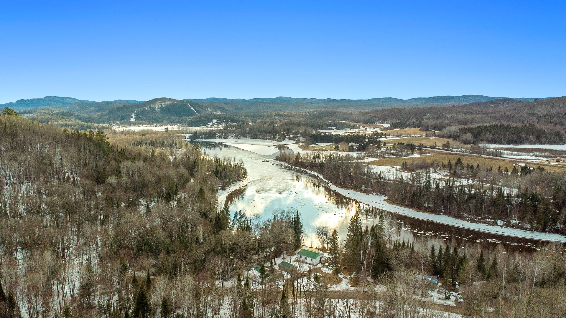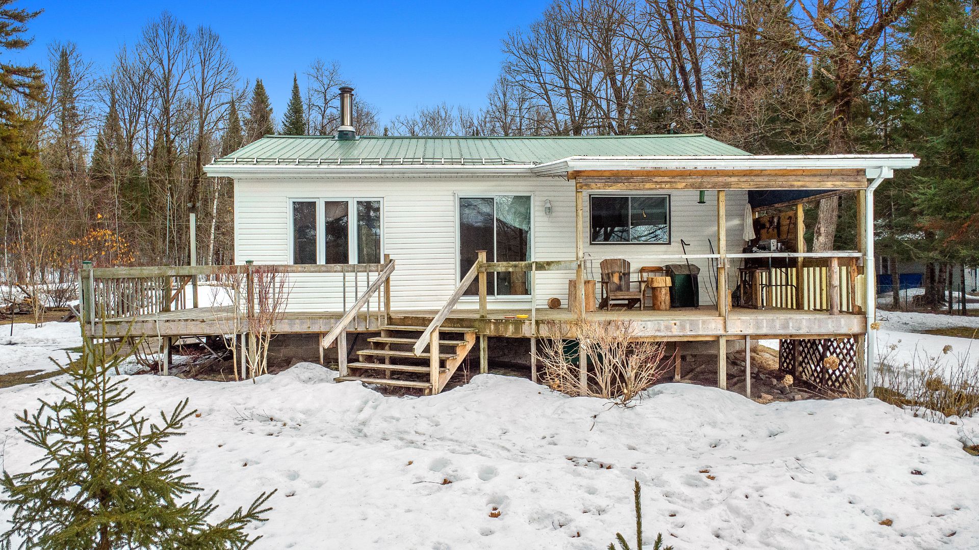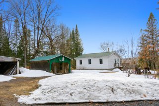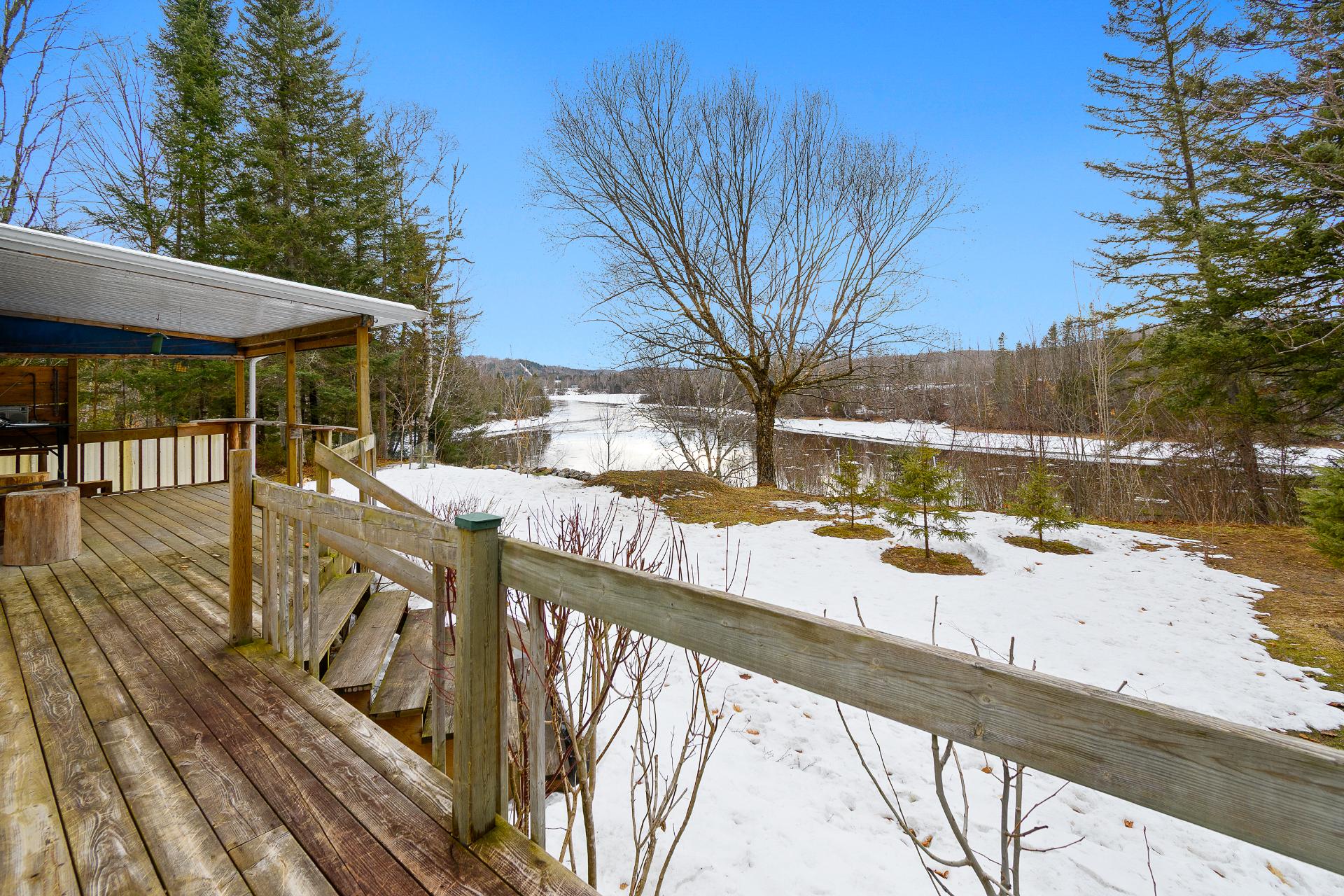 1 bedroom | 1 bathroom | garage. Lot of over half an acre. Charming single-storey, four-season waterfront cottage located in the heart of nature in the Laurentians. Electric heating and a wood-burning stove in the living room, as well as another one in the garage. Large windows offer beautiful natural light and views of the blue water. A large garage with a workshop and several sheds provide additional space. Direct access to the river with motorized boating permitted, ideal for swimming, canoeing, or simply enjoying the scenery. A great opportunity not to be missed for those seeking peace and outdoor living.